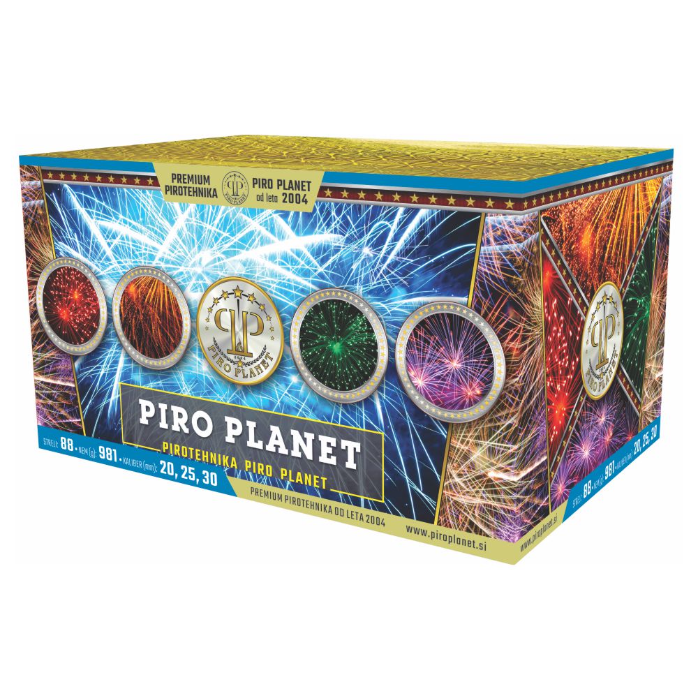 Piro Planet je 88 strelna mega ognjemetna baterija M, L in XL kalibra, katere efekt je: